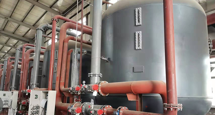 1、本工程考慮利用原有9臺多介質過濾器,并對多介質過濾器進行整改(將原有穹型多孔板的多介質過濾器改造為多孔板+水帽的形式);由于現場對多介質過濾器進行整改比較麻煩,襯膠和硫化都不好處理,我們決定加工9臺新的多介質過濾器作為本次的與處理設備;同時將原有9臺多介質過濾器和7臺活性炭過濾器進行作價回收;便于安裝工作的順利開展。